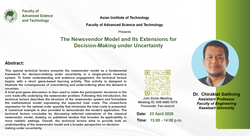 Thinking about pursuing your Master’s or PhD at AIT? Join our online roadshow to explore academic programs, scholarships, admissions, and student life directly with our deans, faculty, students, and admissions team.