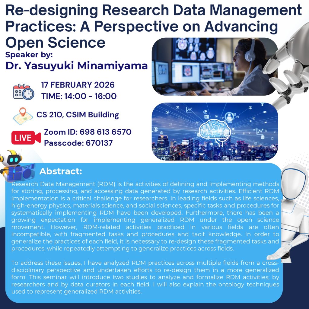 3) DSAI Seminar titled “Re-designing Research Data Management Practices: A Perspective on Advancing Open Science” by Dr. Yasuyuki Minamiyama