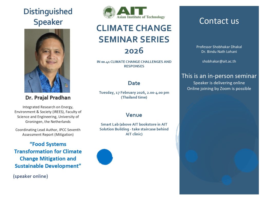 2) 2026 CLIMATE CHANGE SEMINAR SERIES with Dr. Prajal Pradhan, Tuesday 17 February 2026, 2.00-4.00 pm