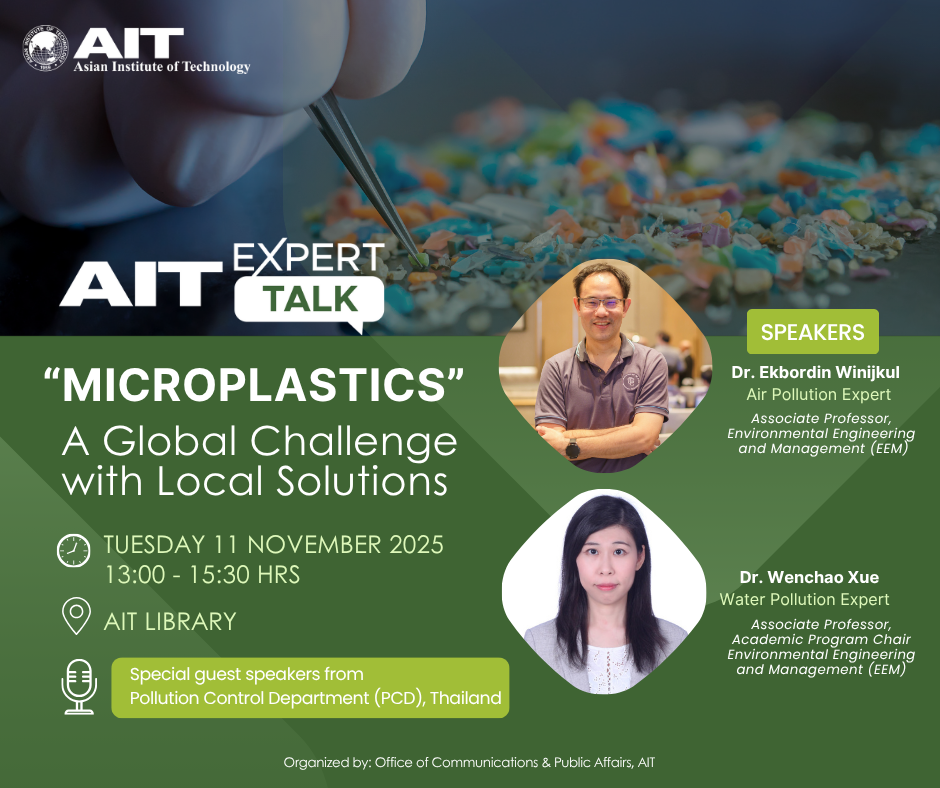 We are pleased to invite you to the inaugural AIT Expert Talk under the theme “Microplastics: A Global Challenge with Local Solutions.”